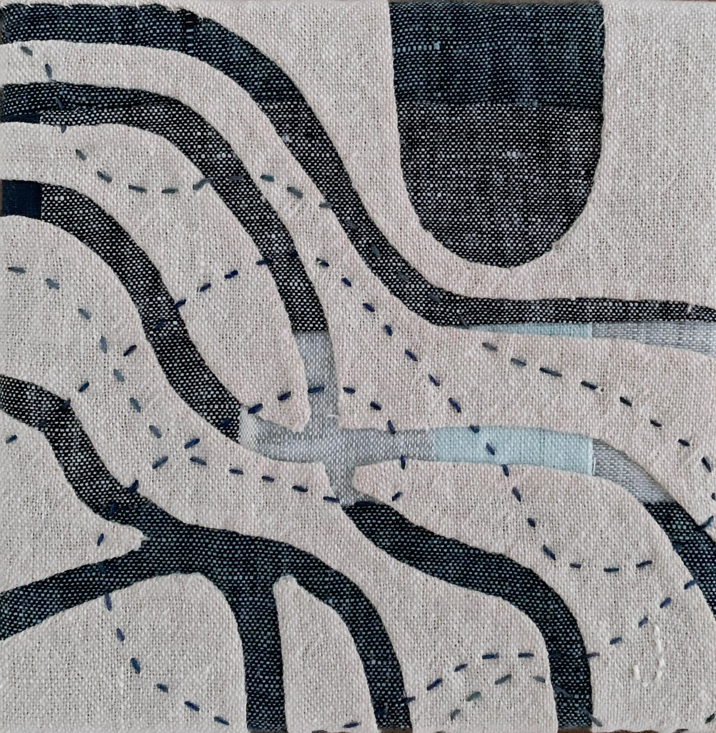 MEANDERING PATHS 3 + Linen and linen-cotton fabrics; 5 x 5 inches